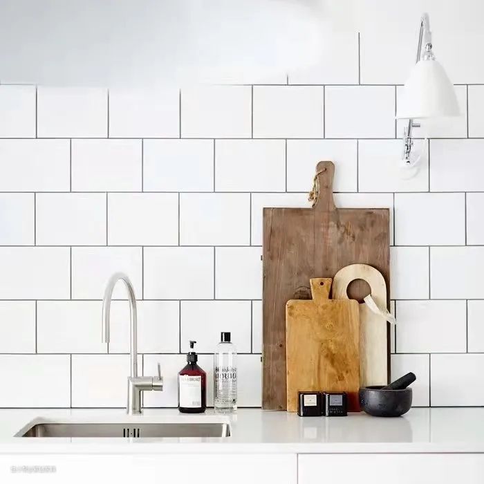 在北欧风的装修中,也常见到用纯色小方砖搭配白色或水泥灰的美缝。