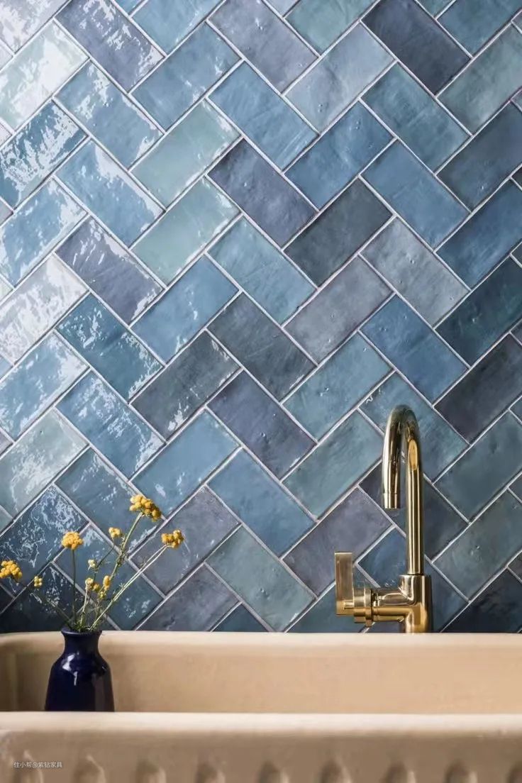 美缝和瓷砖不同色的情况,通常砖缝本身也成了一道装饰。