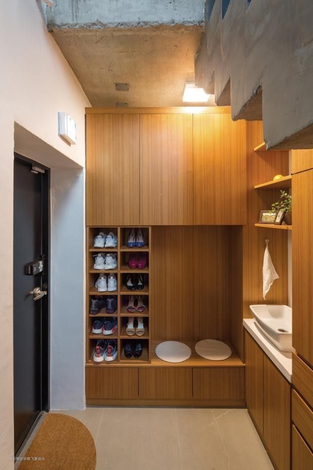 可用作鞋柜使用,很多人会问玄关处安装了洗手台,那么鞋柜放在哪里呢?如果只放一个鞋柜,会不会觉得浪费空间又有点单调呢?现在大多数人家安装的洗手台和柜子是一体式的,洗手台另一侧的柜子可用于鞋子的收纳,但是为了更好的防潮,可以将柜子设计成悬挂式的。