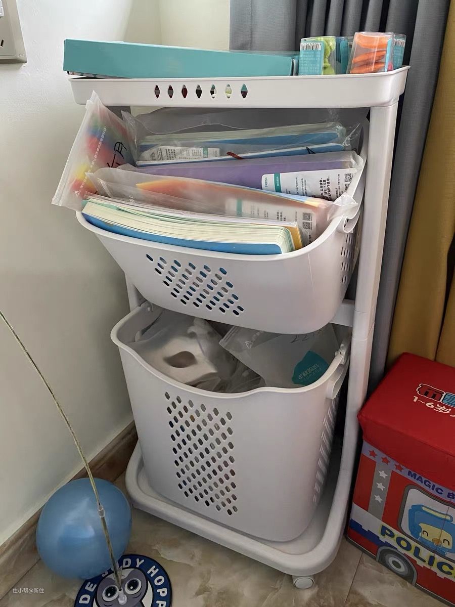 除了能当脏衣篮,放在书房或者宝宝房间,当普通的置物架用也很合适,高低适中,宝宝拿东西也方便。
