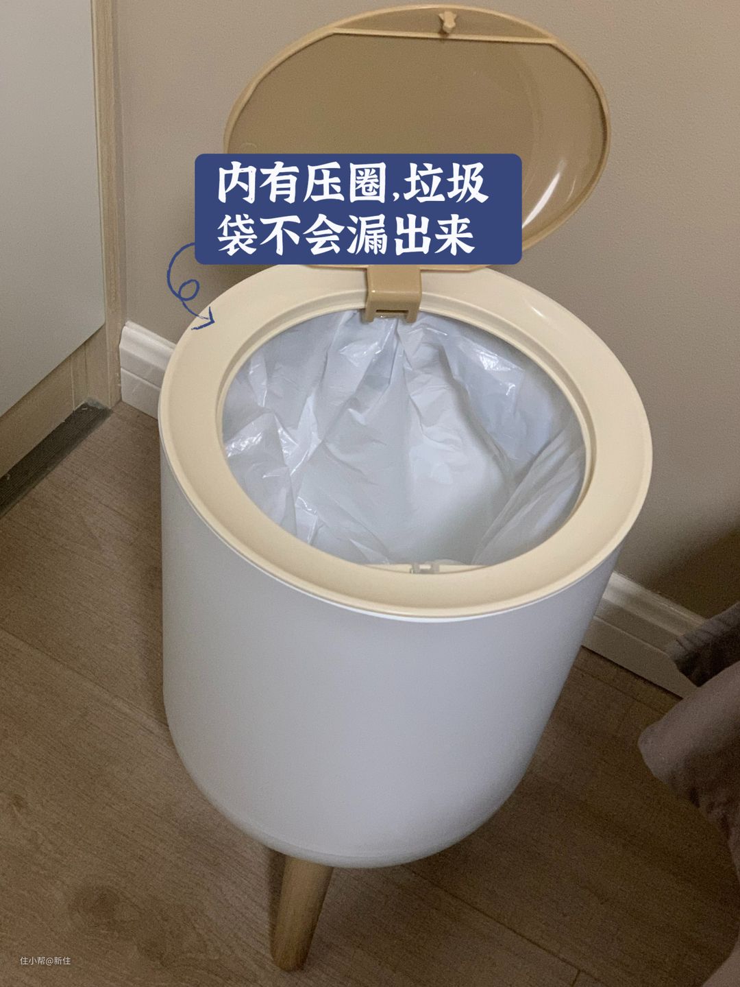 再者,为了保持它的颜值,桶内还设计了压圈,可以把垃圾袋完美的卡在里面,不外露,视觉上更加美观。