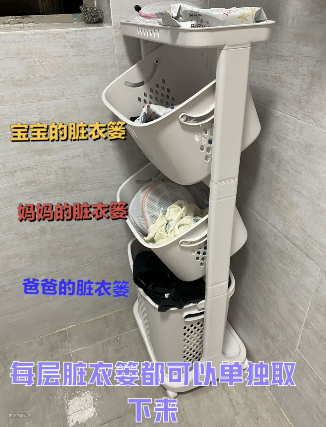 后来,发现了这种分层的脏衣篮,感觉简直是为我量身定制的,它是分好几层的,既能让衣物分类放,还不那么占用空间。