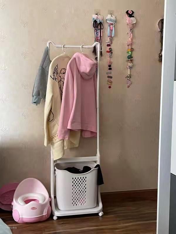 像是脏衣篮的升级款,但又不太一样,这个更适合放在卧室,当落地衣架使用。