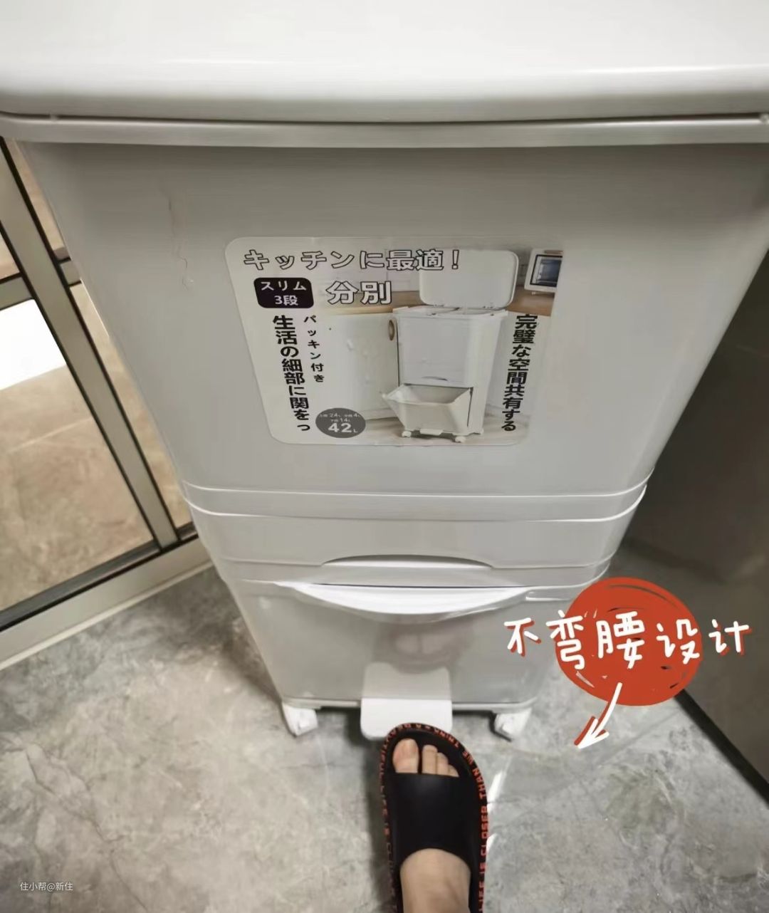 即便是最底层的垃圾桶,也设计的是脚踩开盖的,无需弯腰这一点,真的做到了极致,不仅老人,家里有孕妇的,用它也很合适。