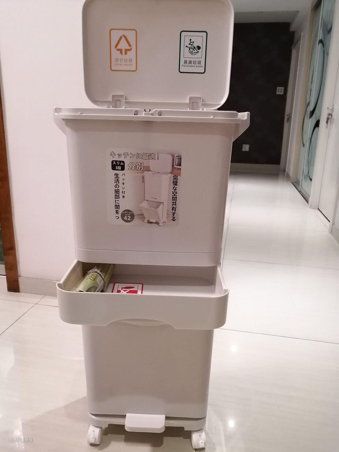 后期越用,越被它的细节之处打动了,上层是干湿分离的,扔厨余垃圾的时候,顺手就分类了,非常方便。