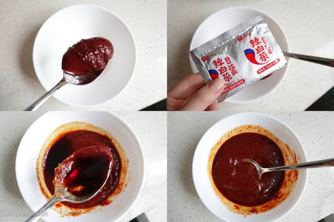 其实部队锅要做的好吃,芝士和辣酱是灵魂,其它的没有也可以忽略。料汁用4勺韩式辣酱+一包辛拉面料包+一勺生抽搅拌均匀