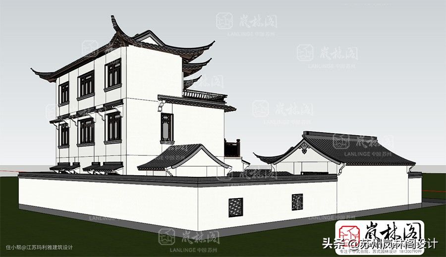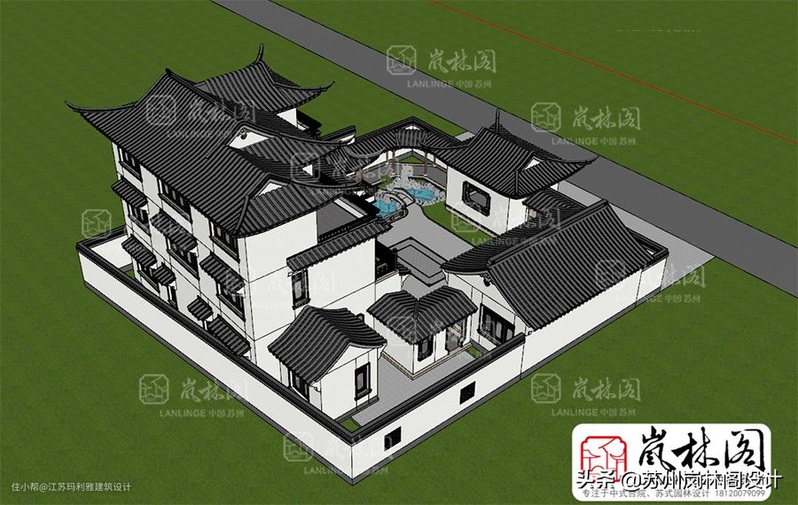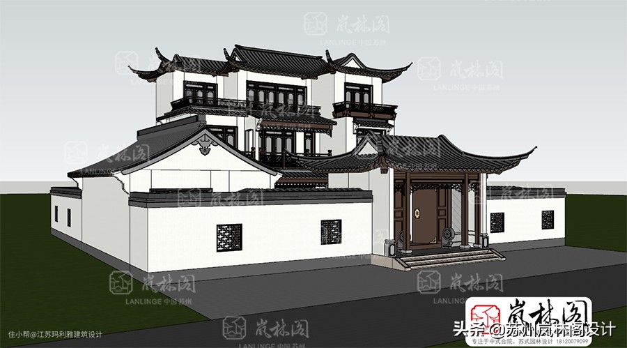 苏式园林别墅中式合院方案——岚林阁建筑设计原创