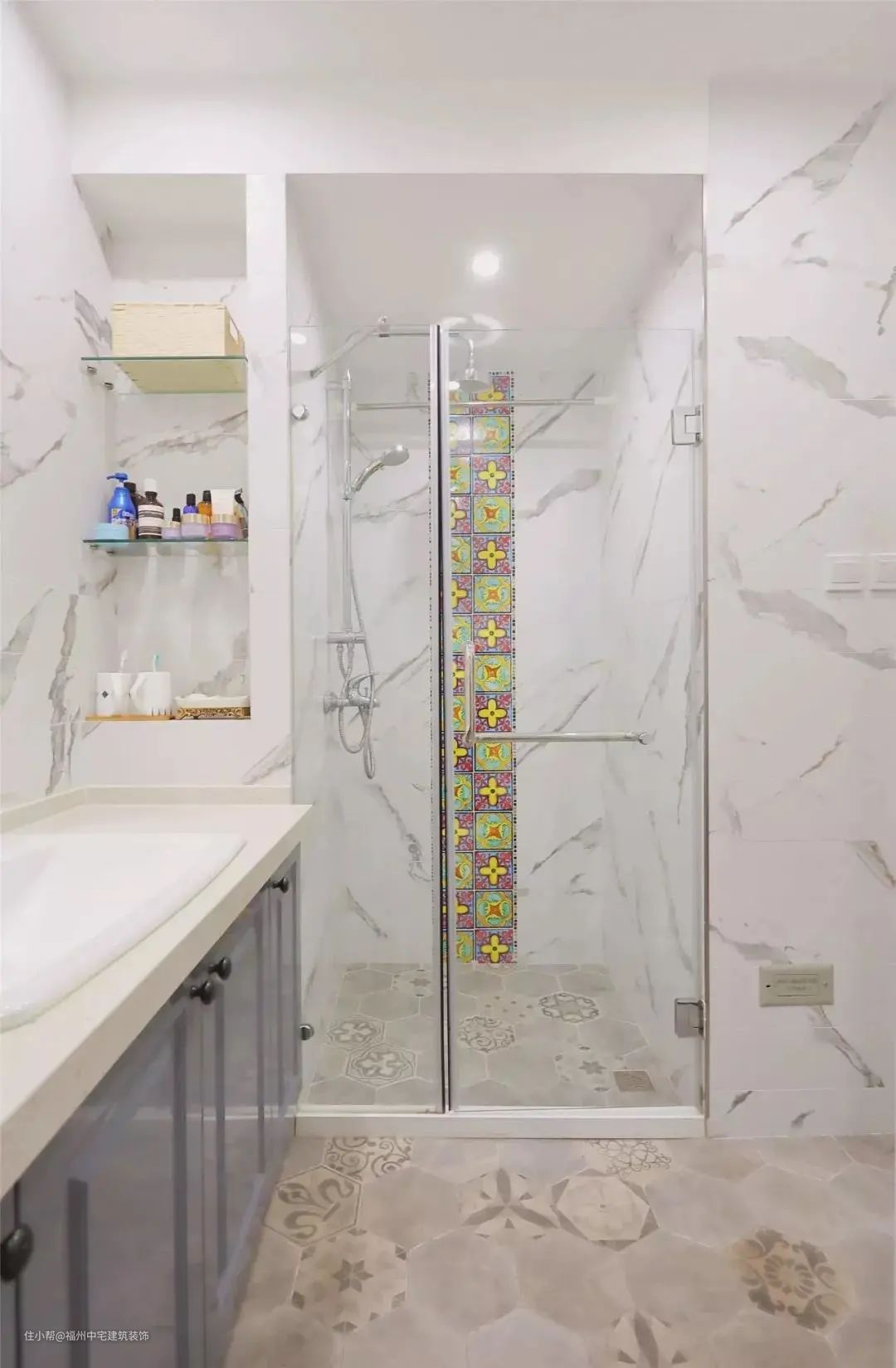 2、马赛克的在卫生间合理地运用,可以为卫生间带来精致的时尚感,适当的选用腰线设计也是不错的想法。