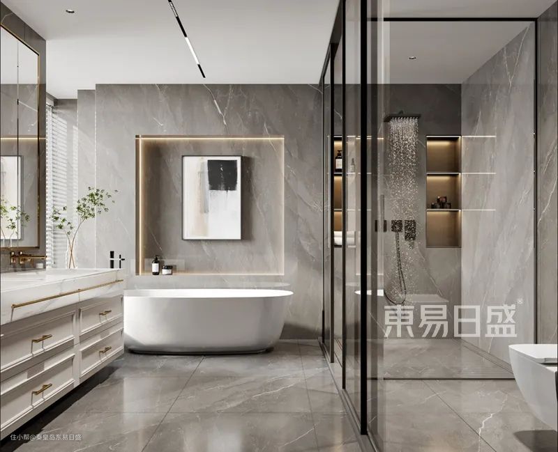 卫生间也大多用轻奢风、简约风来装饰,如此看来这也是时代发展趋势的产物,更加年轻化,家具选择更有包容性。其追求华丽、高雅的风格,居室色彩主调大多为白色、灰色。