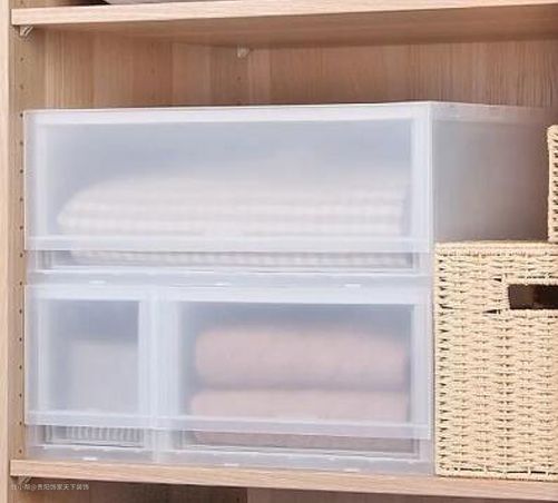 透明收纳箱便于看清物件,家中各种地方都可以摆放。可放折叠衣物类,比如袜子、打底衫等,也可以放生活杂物,比如药品、玩具等。