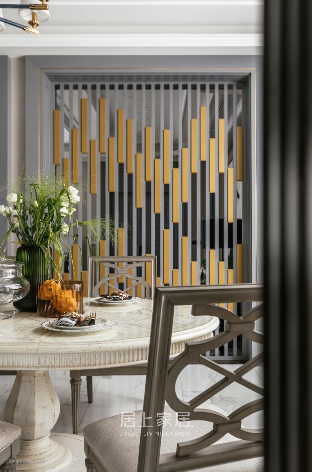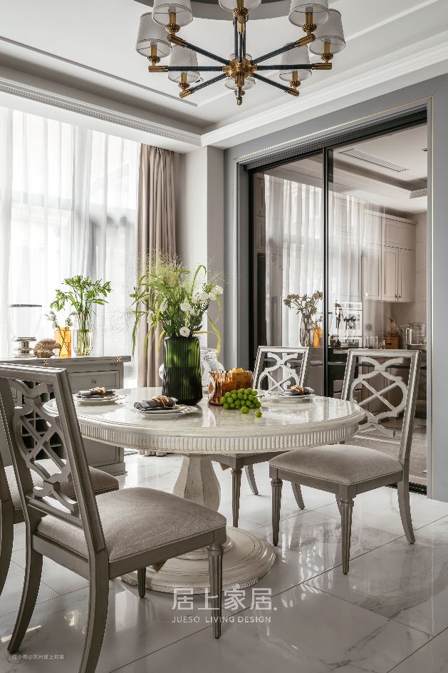 当微风探入轻盈的纱帘之后,合着阳光的斑驳点缀,与餐桌上的色香味相得益彰,大理石餐桌线条秀雅圆润。咖啡的浓醇,一餐一饭升腾起的热气,家人的相视笑颜,幸福平凡而温馨的样子,是家庭生活纯粹的理想之景。