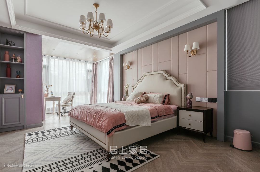 那些父母不曾说出口的爱,都毫无保留的表达在为两个孩子精心准备的卧室里。女儿房里的梦幻粉色,仿佛散发着清甜味道,四季更迭这里一直花季明媚。酷酷的男孩房里,有小超级英雄的大梦想,大码圆角的床边柜和斗柜,带着插画般的童真想象力,明朗可爱。