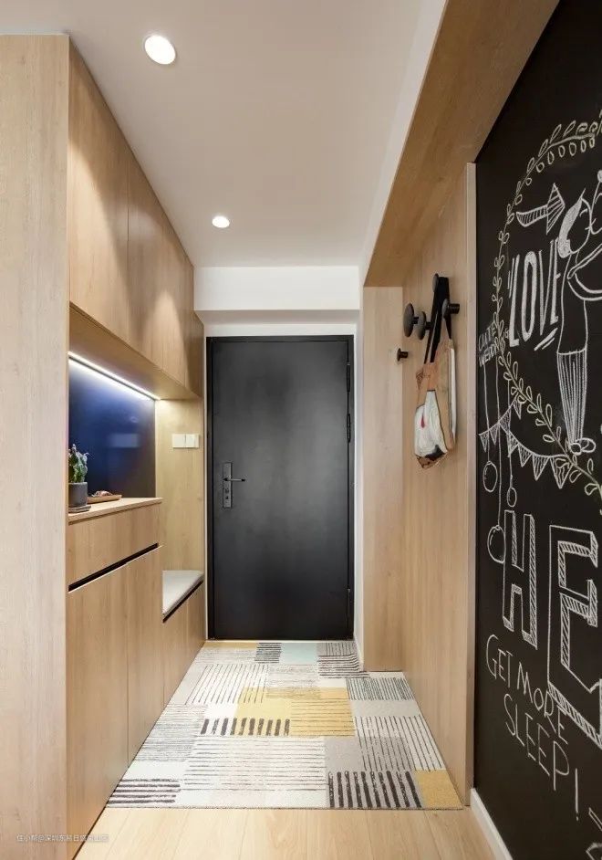 如果不想用来收纳,那么把走廊墙面改造成黑板墙也是一个不错的选择: