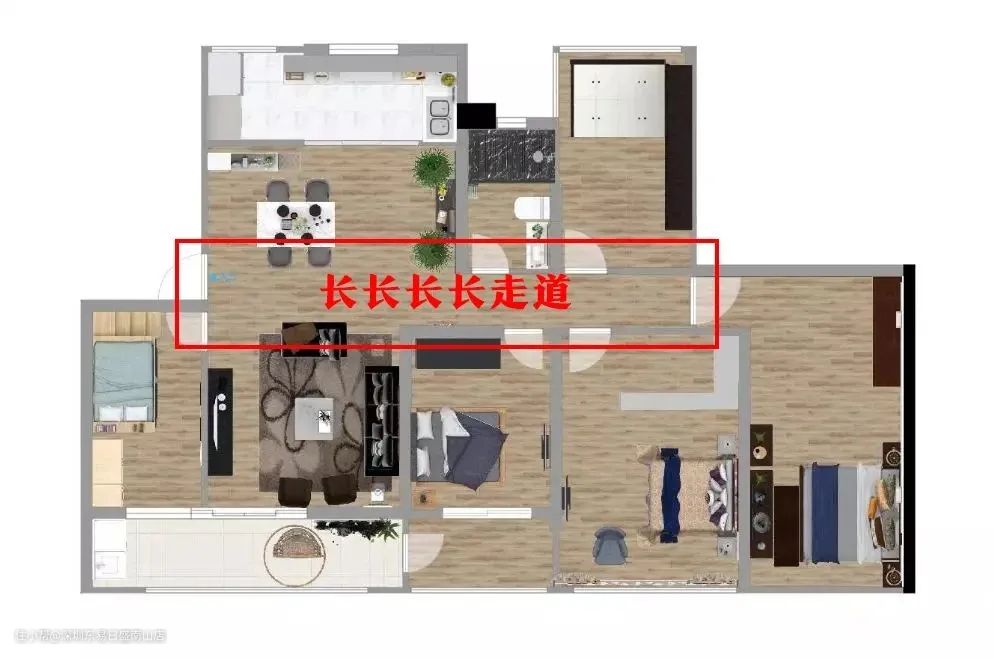 现在市场上的很多户型,都有一条长长的走廊,像这样: