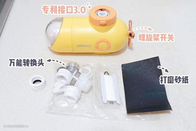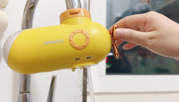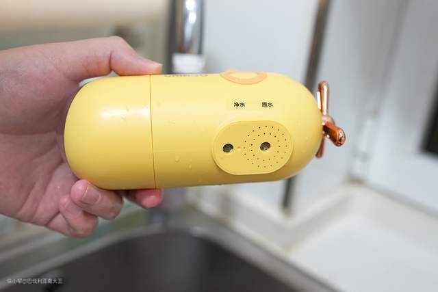 朋友来我家玩洗手时,被问最多的就是这个长的像潜水艇似的小东西,其实是七彩叮当家的一款水龙头净水器。它是属于前置过滤,无需通电,安上就能用,是我家每天使用最率最高的神器。