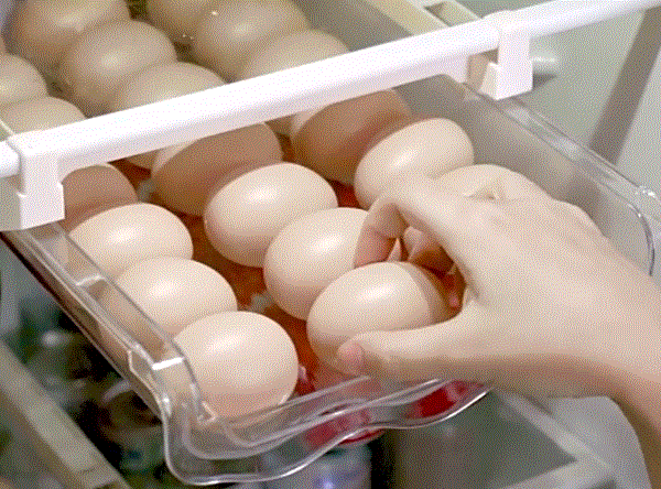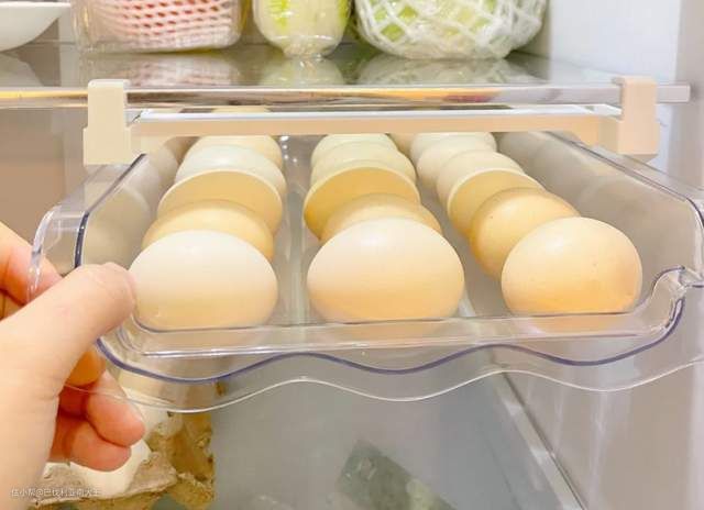 可以悬挂在冰箱隔层上,炒鸡省空间!每拿走一个,后面的鸡蛋会自动滚落到前面,乐趣满满~不用担心滚下来的鸡蛋会撞坏哈,它们都是慢慢滚下去的~