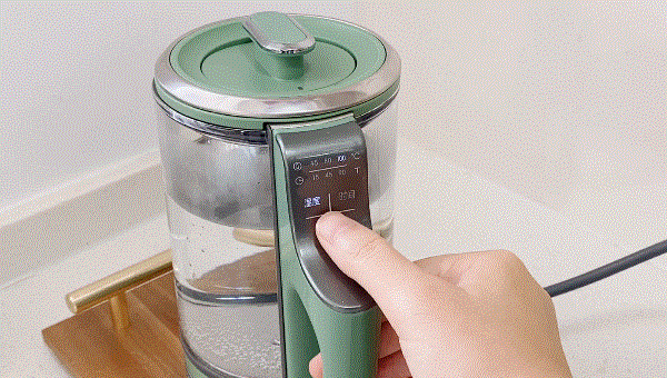 操作非常简单,触摸⼿柄处的隐藏式按键即可调节温度和时间,分别有3档时间(15/45/90min)和3段温度(45/80/100℃),可自由搭配,满⾜冲奶、煮茶、炖汤等多种烹煮、冲泡需求。