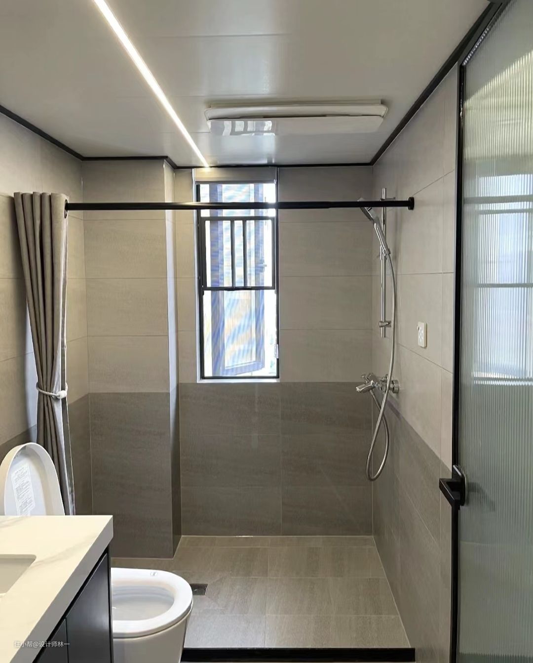 采用了浴帘进行干湿分离,浴帘正面是棉麻材质,背面是防水材质,干湿分离的神器。