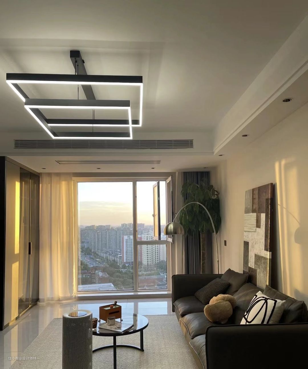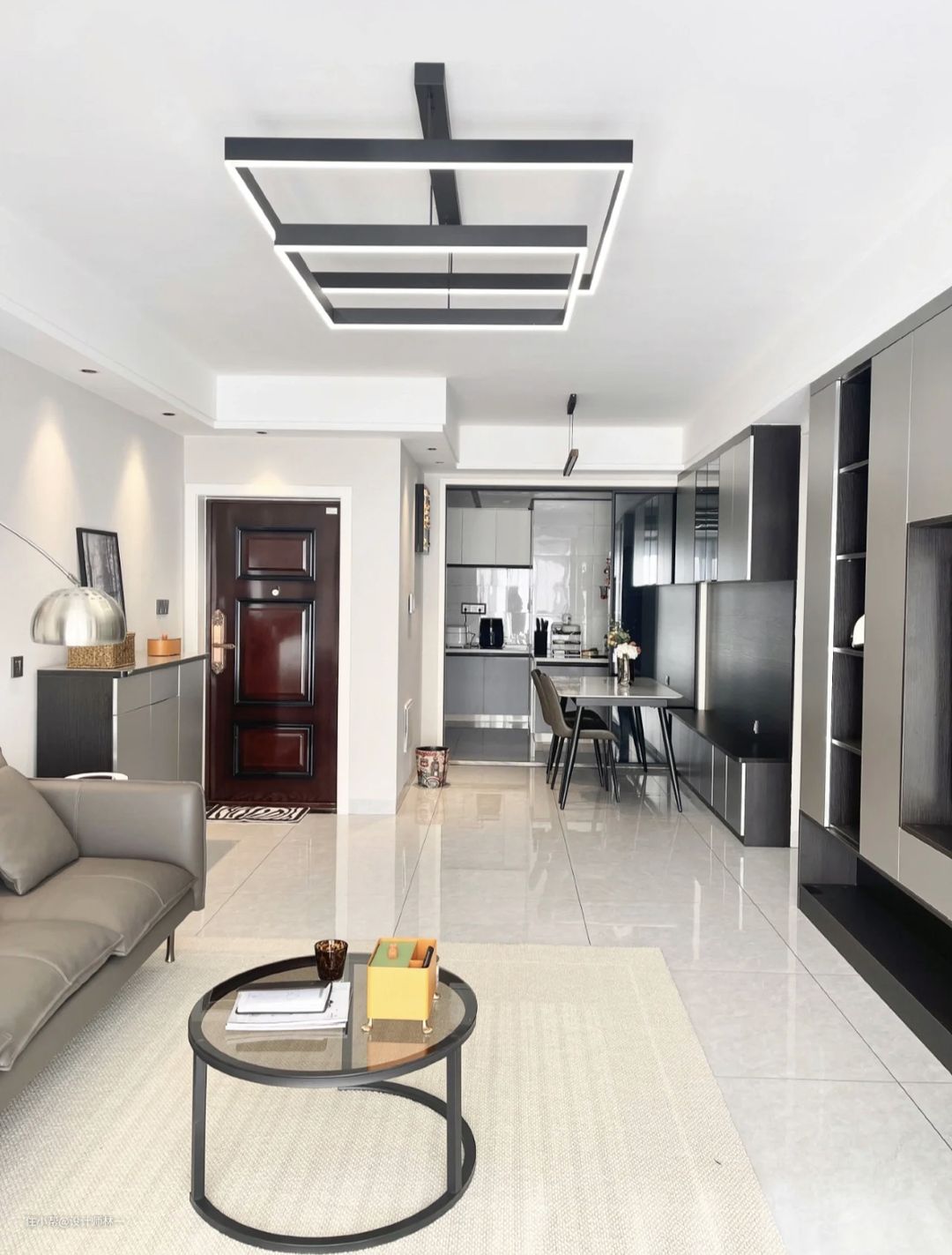 吊顶铝合板一定要选900X450尺寸的,真的很香,不仅显得空间很大,而且很上档次,更有质感,搭配线条感的长灯,整个空间氛围感十足,更加有层次感;