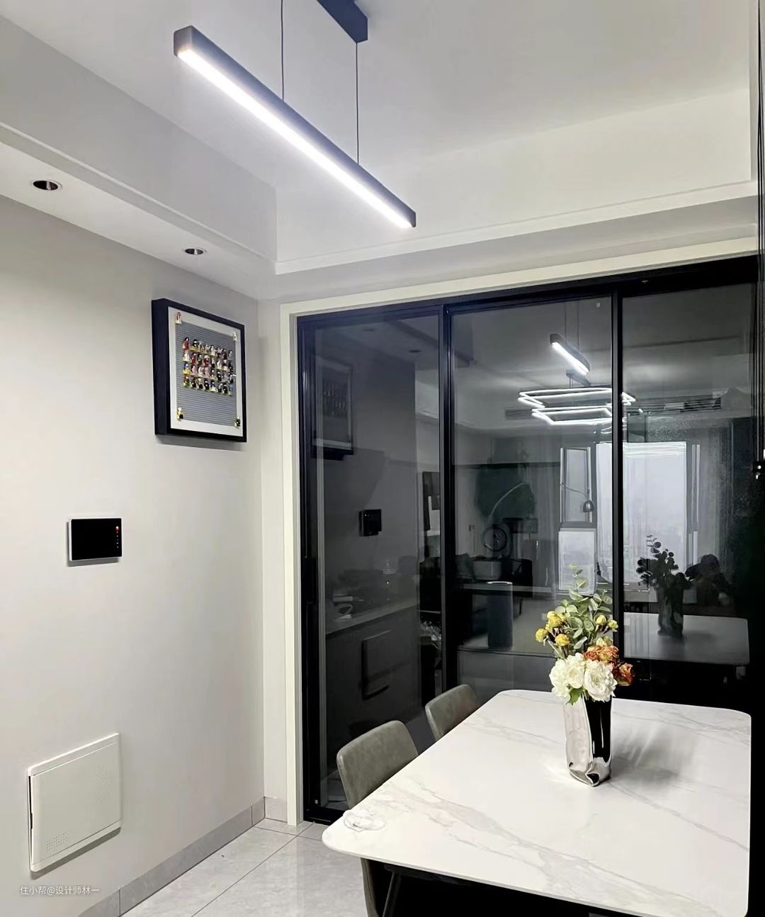墙面设计了乐高装饰画用于电表箱遮挡,让空间保持美观性又充满趣味。