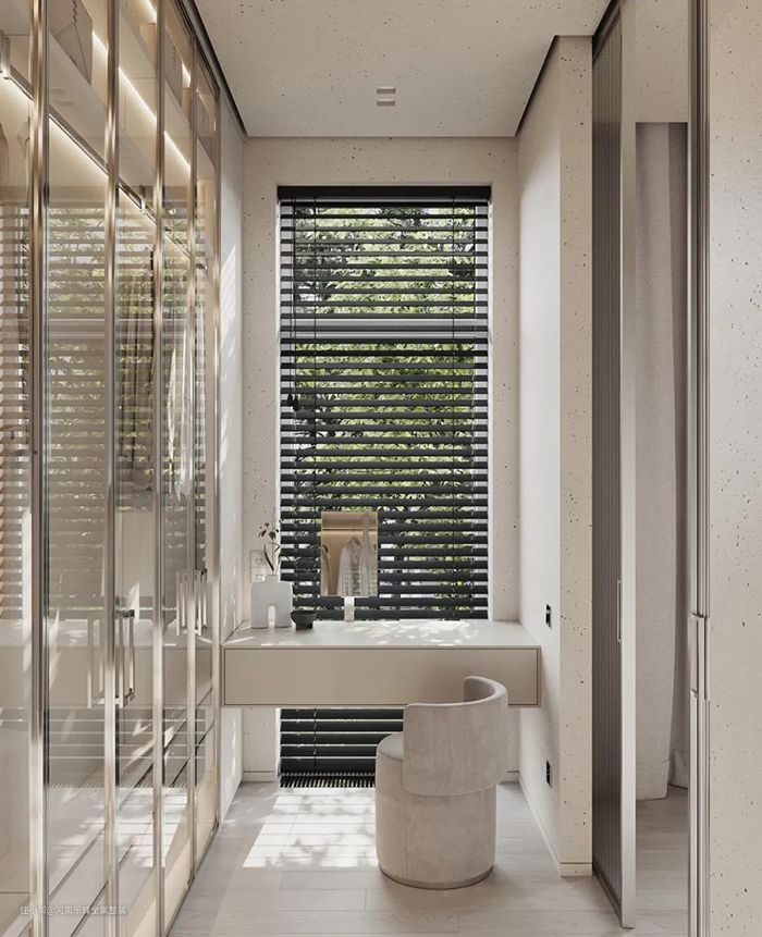 梳妆台与衣柜组合设计,搭配高级灰、高级黑、中性原木色等,让储物空间更加丰富,既可以充分利用房间的每一寸面积,又能满足我们的各种需求,十分便捷的设计。