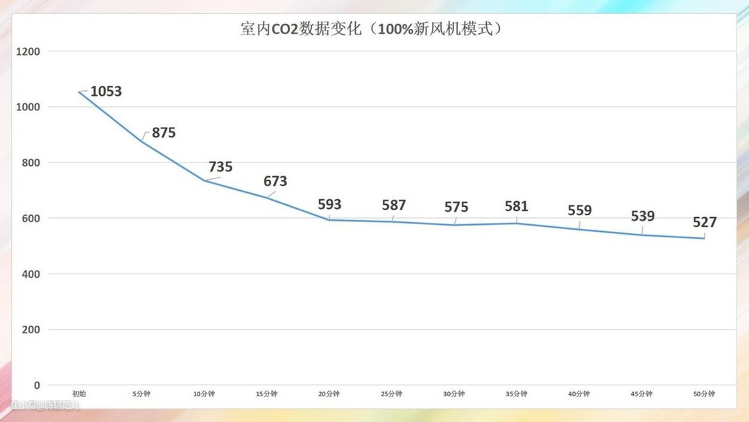 ▲再来看一下使用艾泊斯AC-260壁挂新风机净化室内CO₂浓度的效果吧,从上图的数据变化可以看到室内CO₂的数值从最初的1053开始逐渐地降低至500左右,由此可知这款机器在这方面的表现同样出色。