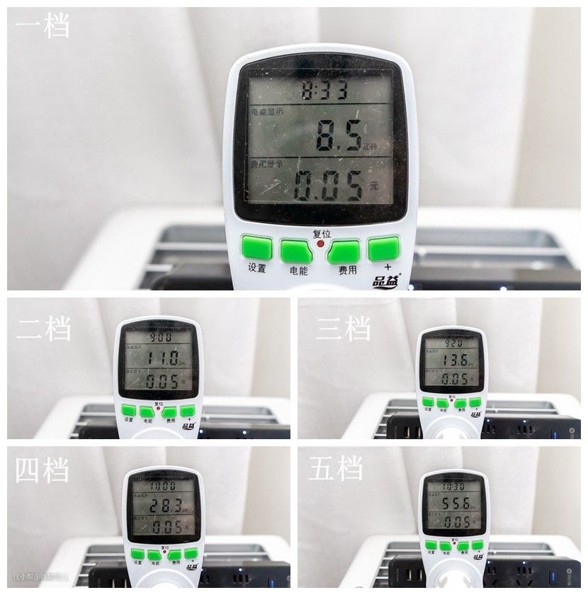 因为经过我的测试之后发现机器在新风机模式、空净模式、混风模式下的功耗基本相差不算太大,所以这里就不再每一项单独罗列出来了。