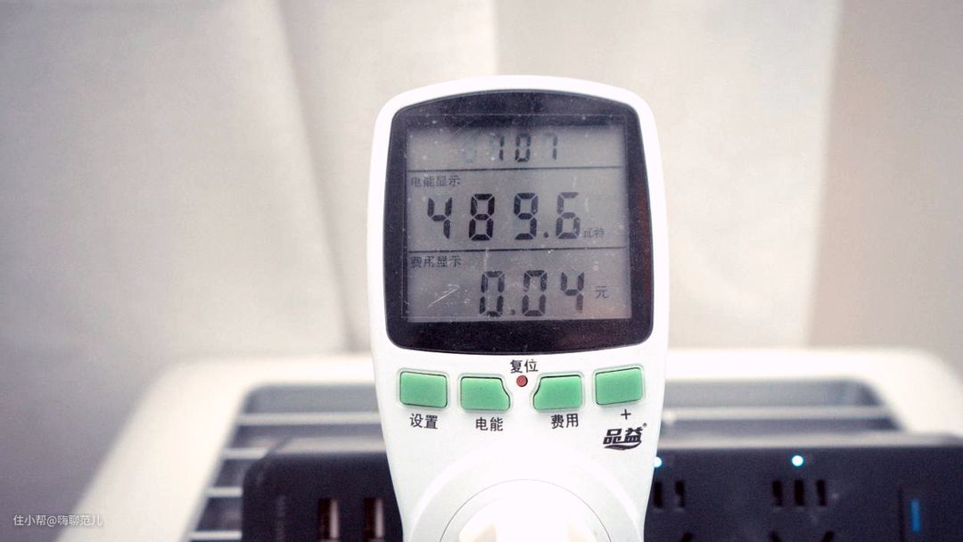 ▲除了机器的净化效果、风量表现,其实在日常使用中机器的功耗表现也是很多人关心的一个方面,所以我也特意简单的测试了一下,上图是机器在100%新风模式下开启电辅热功能之后测试所得的数据,从这个数据来看我认为这款机器还是挺省电的。
