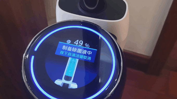 ▲选择除菌模式或自清洁之前,添可芙万2.0 LCD版本均会先制备除菌液。