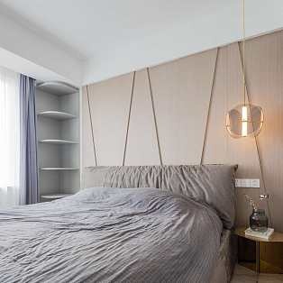 木质感的元素能营造更轻松惬意的睡眠氛凹。