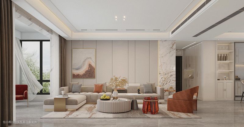 随着材料与工艺的发展,无主灯设计的花样也是越来越多,比如在墙面上条状的嵌入灯槽,增加空间的光影效果;在背景墙的造型上加入灯带、在柜体内嵌入灯带等辅助光源的,具体可以根据空间整体搭配设计效果,来决定辅助光源的布置与设计。