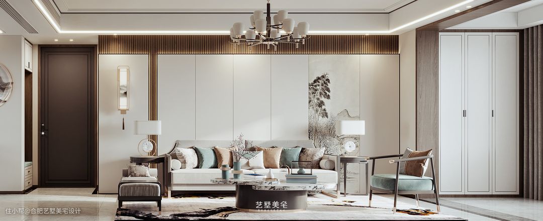 中国传统山水画并不以色彩为重,它追求的是一种诗画结合的意境美。透过这一审美准则,室内空间的色彩搭配主要有两种方法