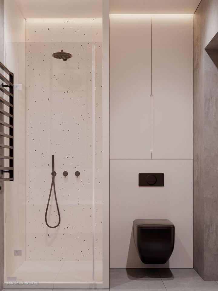 卫生间淋浴区的墙面、地面每天都会面临大量洗澡水的“考验”,而且洗澡水本身的水质问题,加上沐浴露的混合,极其容易在墙面、地面上留下水垢,所以从耐脏的角度,卫生间的瓷砖建议选择灰色、复古色等耐脏的颜色。