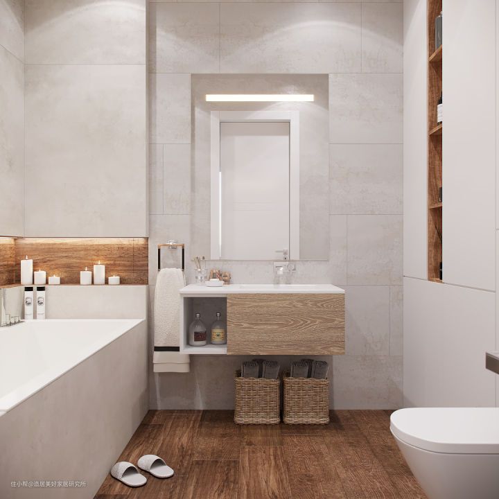 卫生间是我们频繁进出的功能区,而且是与“水”打交道最多的地方,另外卫生间相对于其它功能区空间来说较为狭小,装修的时候应当优先考虑防滑、耐脏耐看,让狭小空间显得简洁宽敞又大气。