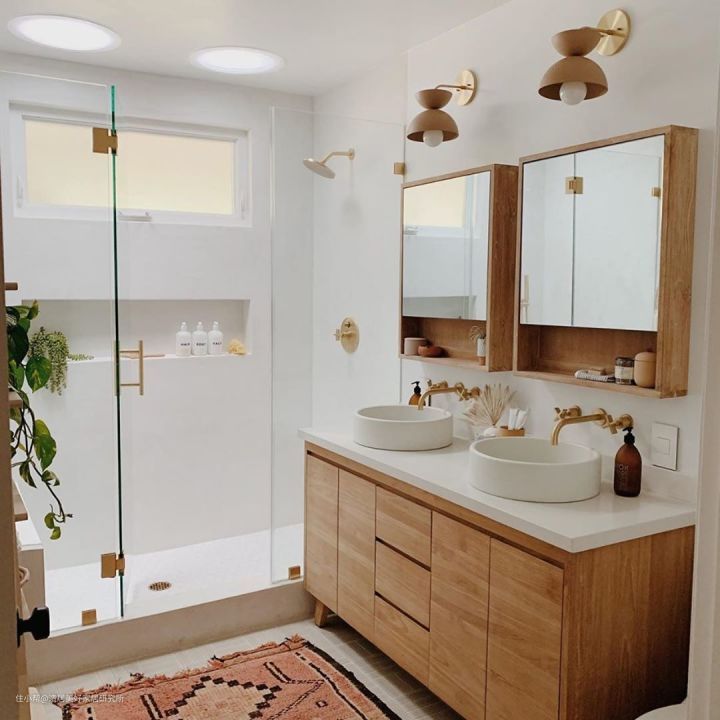 卫生间淋浴区干湿分离设计可以有效的把洗澡水控制在淋浴区,然后保持卫生间其它区域的干燥整洁,然后在淋浴区外摆放一块吸水速度快的地垫,用最少的时间把鞋底的水渍吸干,减少预防因鞋子湿滑而发生摔倒。