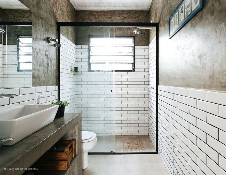 另外,如果卫生间的地面砖和墙面砖颜色不同,那么建议地板砖的颜色比墙面砖颜色深,避免出现头重脚轻,目前“灰色地板砖+墙面白色面包砖/方块砖”真的很受欢迎!