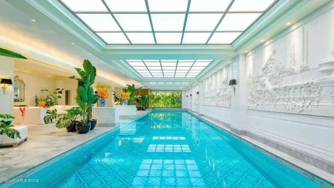 客厅有全自动落地窗,打开就是无边泳池。可以写入设计史册的双层泳池,富豪的泳池派对上,可以看到上层泳池的“美人鱼”遨游。