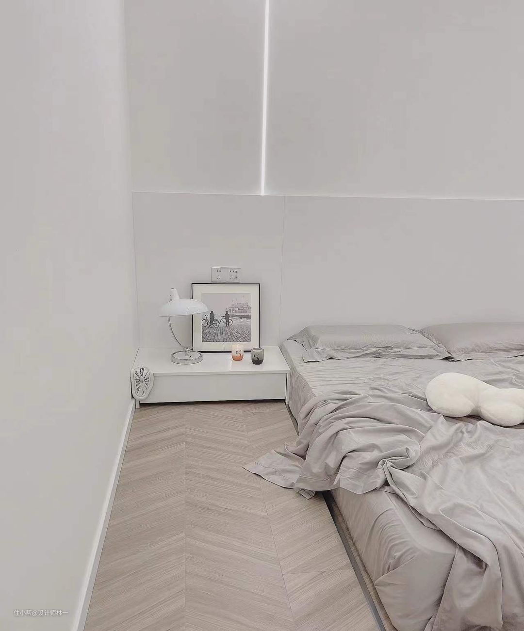 床头设计了木饰面肤感白的床头,更加简洁,还充满高级感,白白净净地看起来很舒服。
