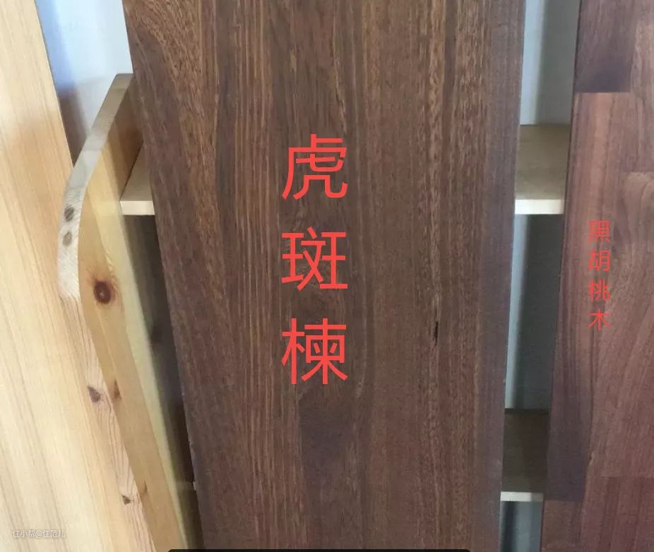 第二种就是侧面接缝处、底板、背板、侧板,接缝处有黑边或者白边的,或者花纹是横纹的,也是贴皮。
