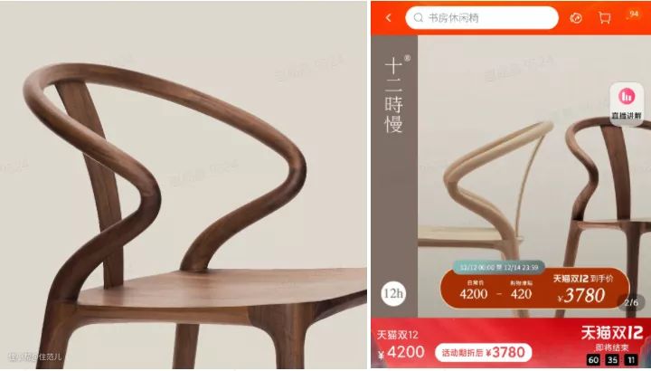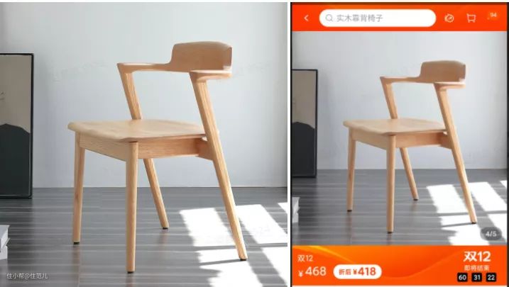 比如你想买一把餐桌的单人椅,选的是进口的北美黑胡桃+原创设计品牌,双12到手价飙到3780元。