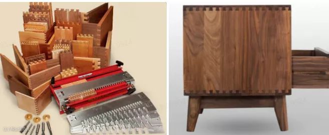 左,指接榫工具,右实木家具中常见的指接榫是半工业产物