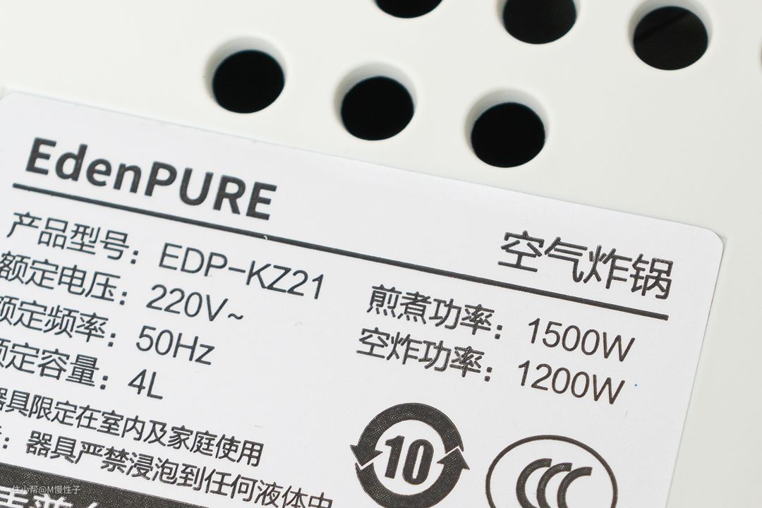 底部中间有产品的参数,可以看到空气炸模式下有1200w的功率,这比一般的空气炸锅7-900w的功率要更大,加热的效率会更高。而煎煮时的功率更达到了1500w,有足够的火力保障短时间大火力的煎煮需求。