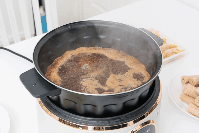 配套的蒸锅去掉蒸架后就变身为了一台大容量的煮锅,寒冷的冬天煮个火锅是最好不过的了,容量足够一家三口的使用,来看看火力怎么样吧。