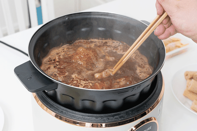 同时火力也非常充足,设定200℃,实测锅底温度最高时可以达到260℃,足够高的温度才能让食材有充分的美拉德反应。