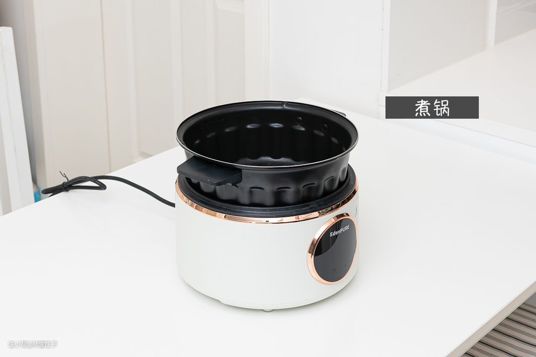 首先来看看外观的部分吧,配合上不同的配件,宜盾普多功能空气炸锅能形成四种不同的形态,分别是空气健康炸、蒸锅、煮锅、煎锅。