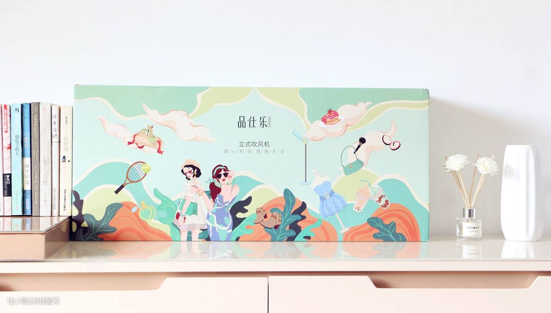 品仕乐立式吹风机外包装设计非常具有设计感。