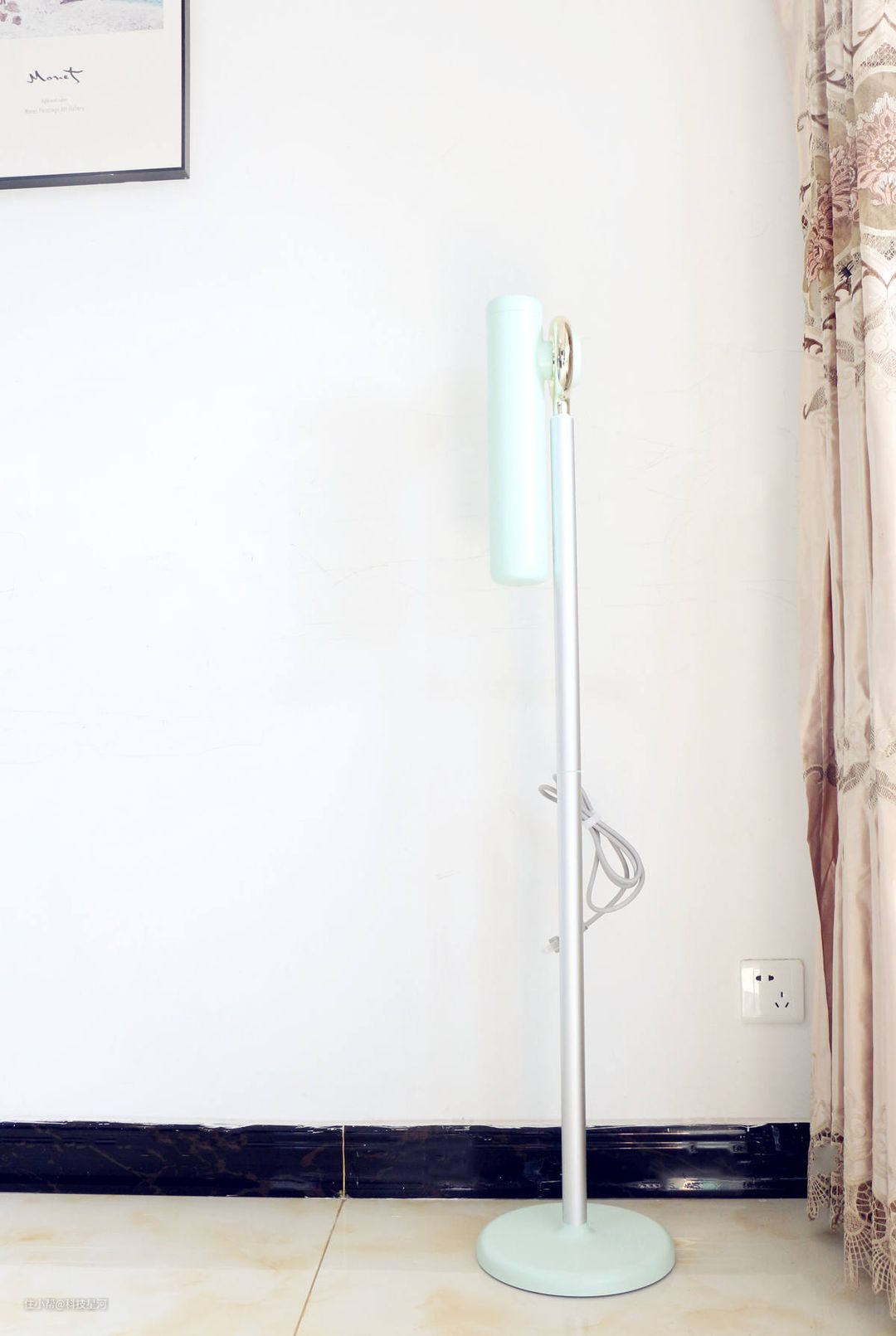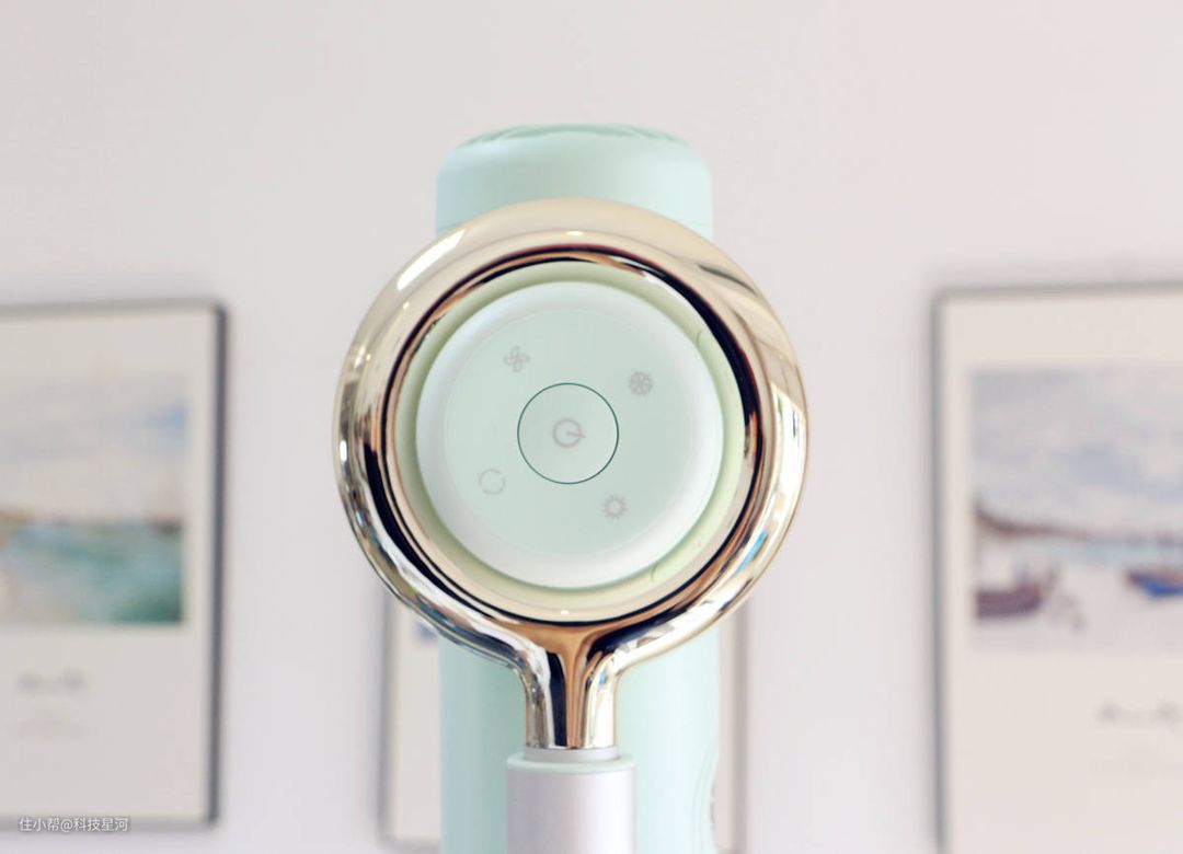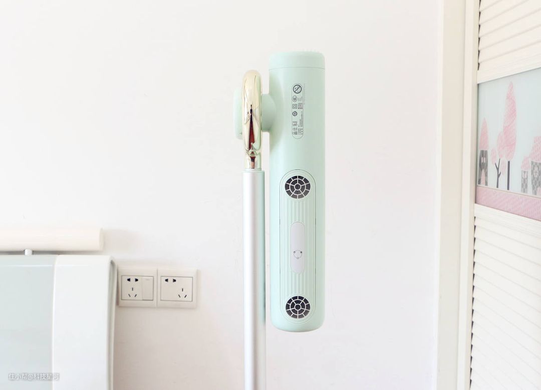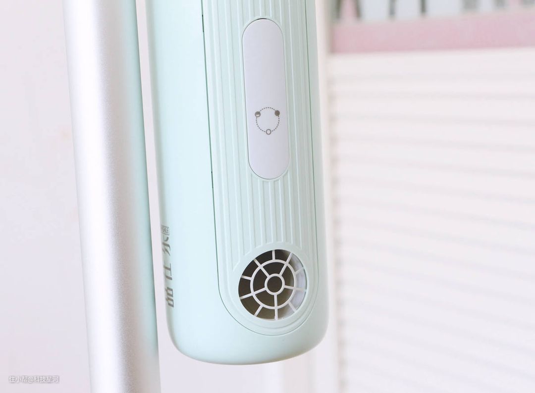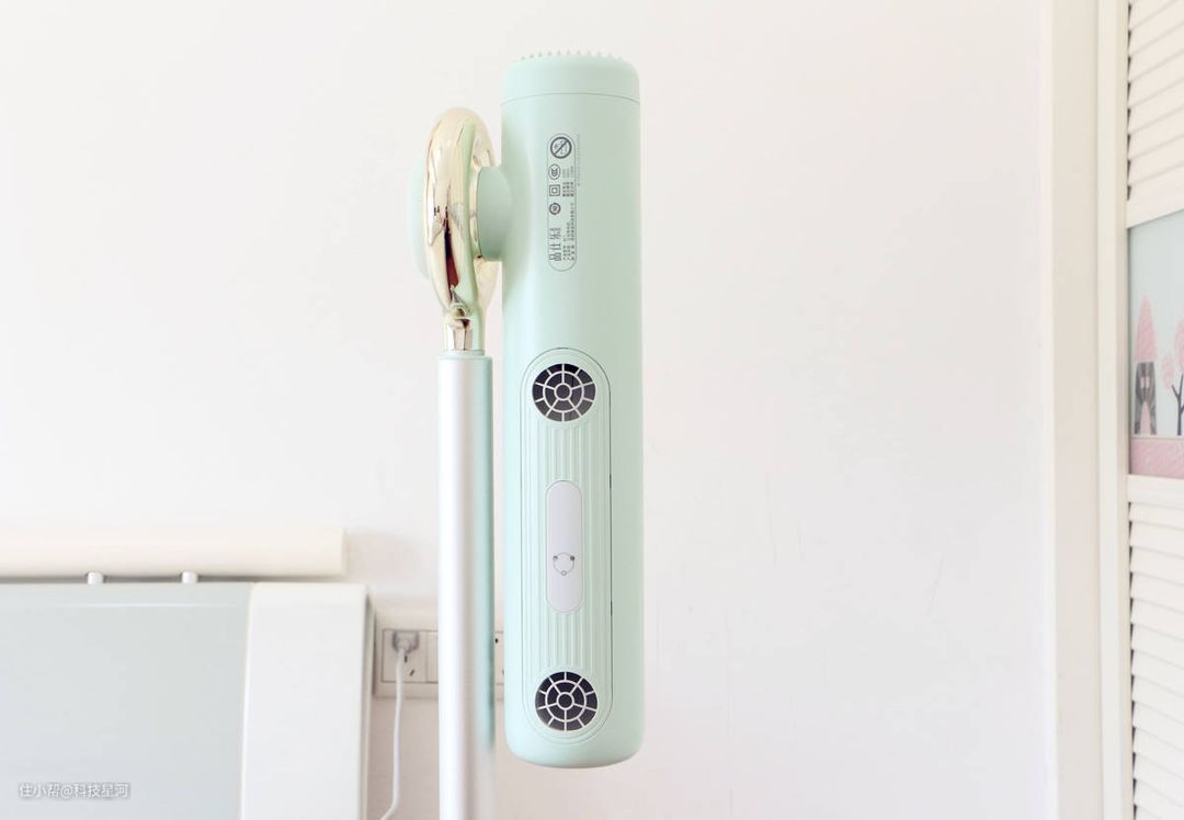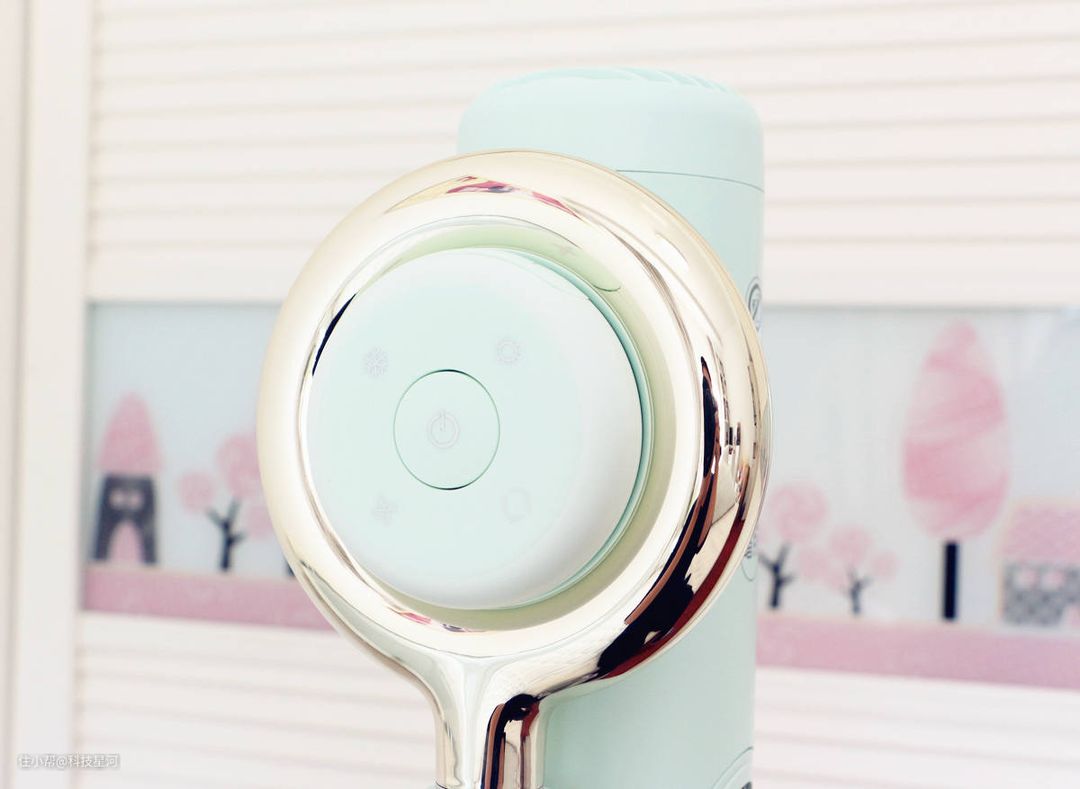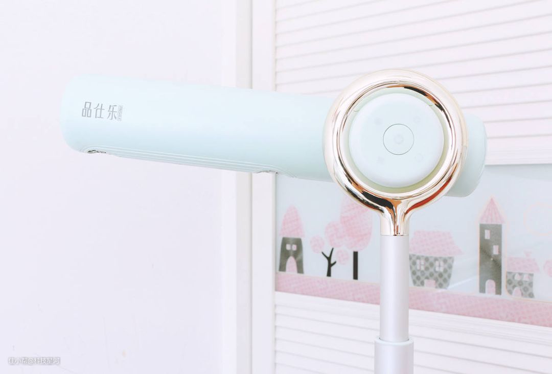 品仕乐立式吹风机青春版在薄荷绿配色的基础上,还为吹风机增加了一个金色的圆环设计,给人以雅致而不单调的感觉。平常随便放在家里的一角都非常好看,与房间的装修毫无违和感。
