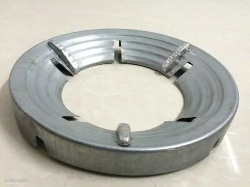 距离火焰最近的,金属的,上面有很多小孔或者缝隙的东西,就是火盖。天然气需要通过火盖出来,再产生火焰。