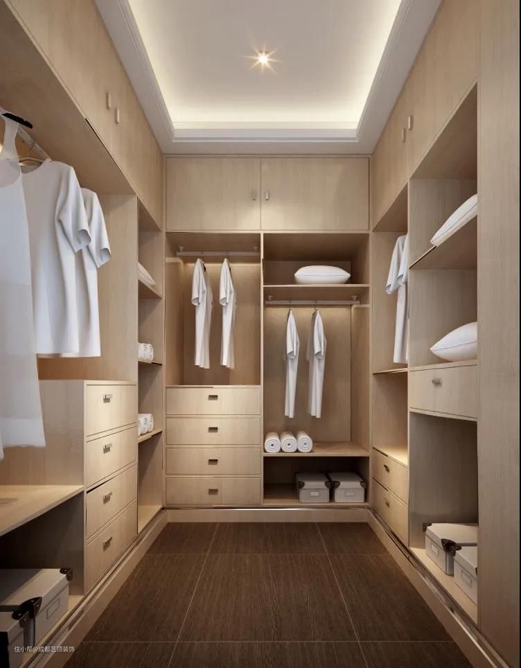 衣柜也可以直接取消衣柜门,采用开放式设计,整体效果美观大气,精致又时尚。
