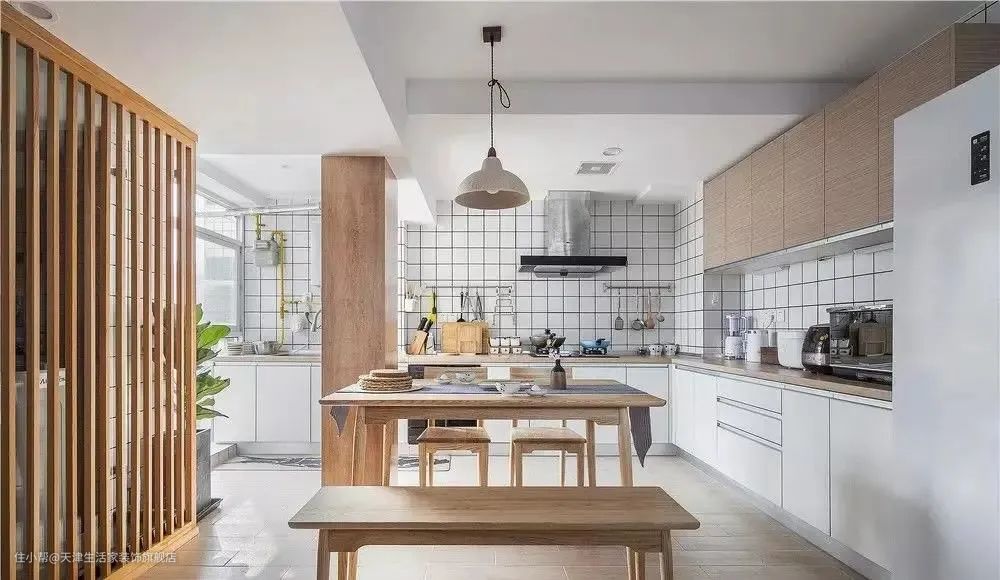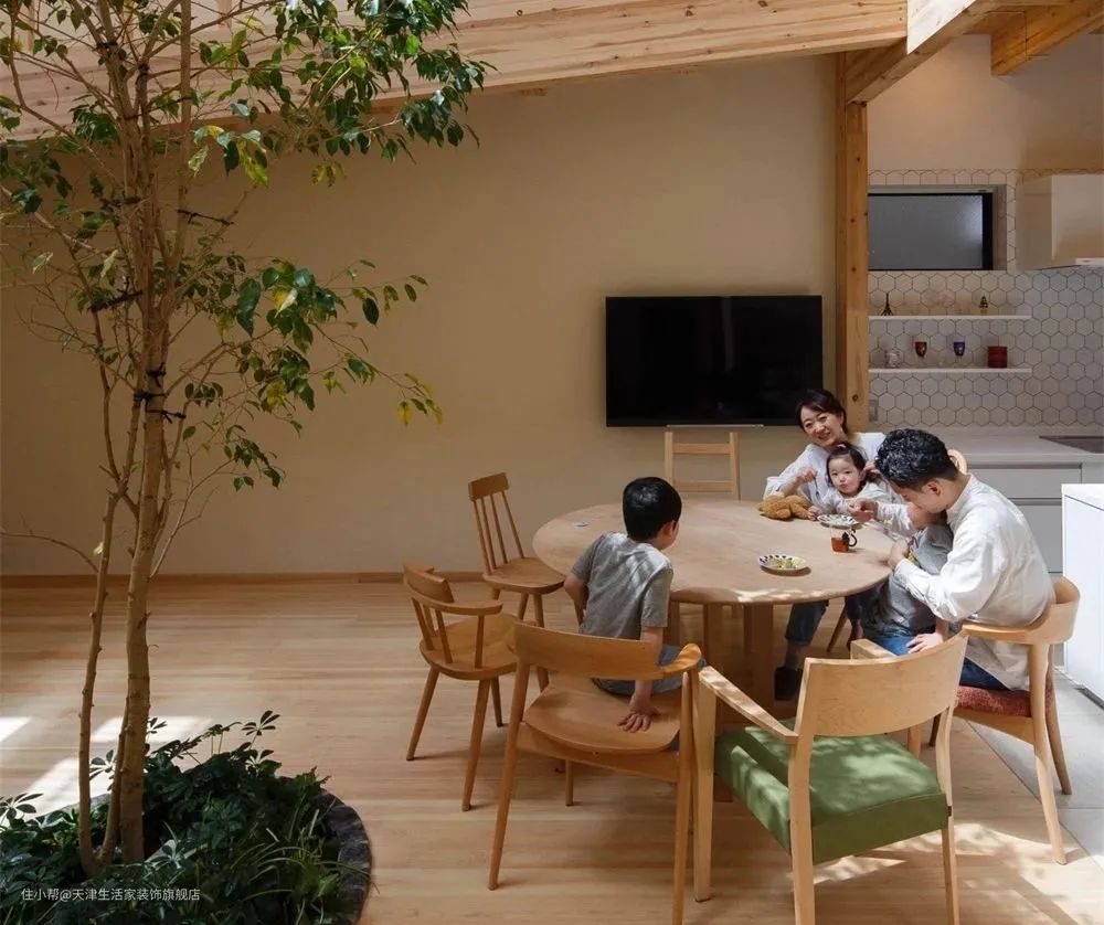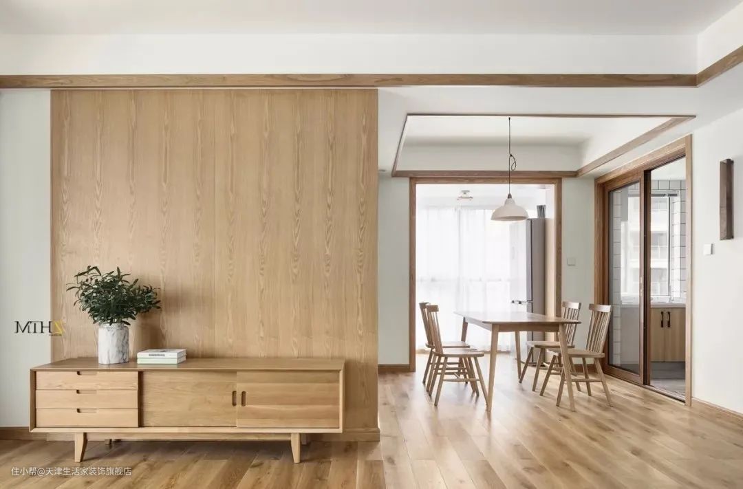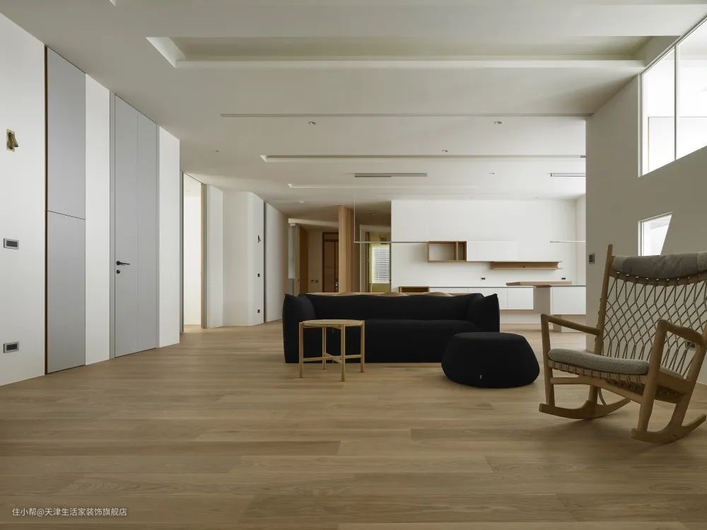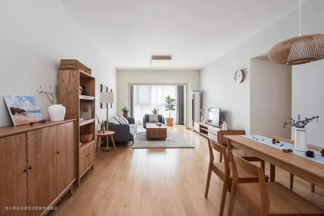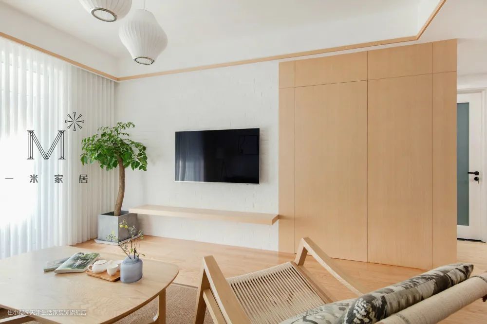 为了打造自然舒适的日式风格,大部分设计师选用了米白、原木、浅咖、灰色等克制的色彩,而是让通透的采光为其增添风采。并不会棱角分明而是有着弧度的木质家具,展现着日式的温柔。